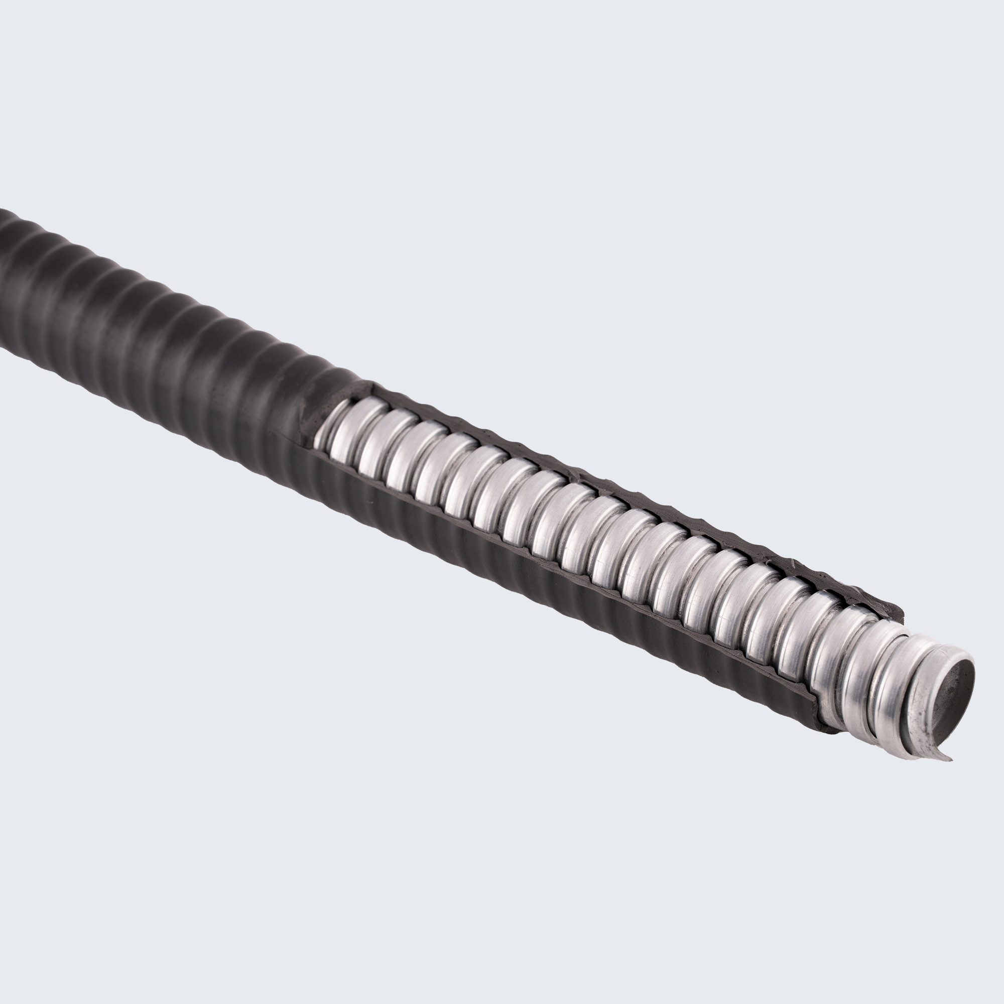LSZH / LSOH Kaplamalı Esnek Çelik Spiral Kablo Koruma Borusu, elektrik kablolarını hem mekanik etkilere hem de yangın anında oluşabilecek risklere karşı korumak amacıyla geliştirilmiştir.